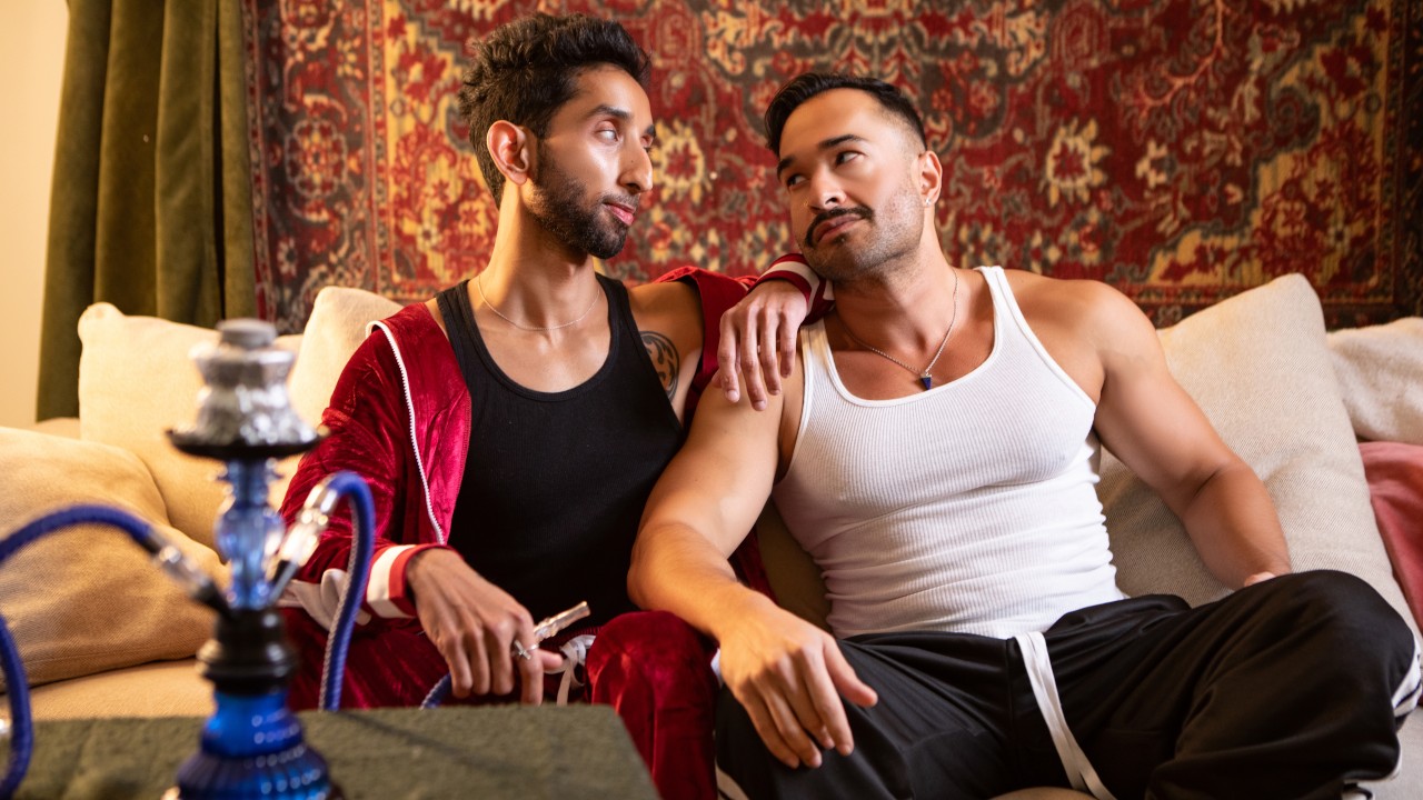 Description: Raj hasn't met his friend's new fiancé yet, so he's excited when he and his boyfriend are invited for a dinner party. He and Ram Sivan quickly hit it off while their partners are cooking, and Ram pulls down his shalwar to take out his cock. Raj enjoys the appetizer, and soon he's bending over for the main course! When Ram's fiancée spills some sauce on Raj's kurta, he waves it off, as the guys seize the chance to fuck in the bathroom. Raj rides the top on the floor and cums hard as Ram fucks him on his back, and Ram gives him some more sauce for his face!