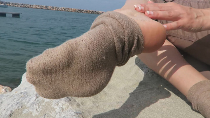 Hot wrinkled soles, toe curling close up