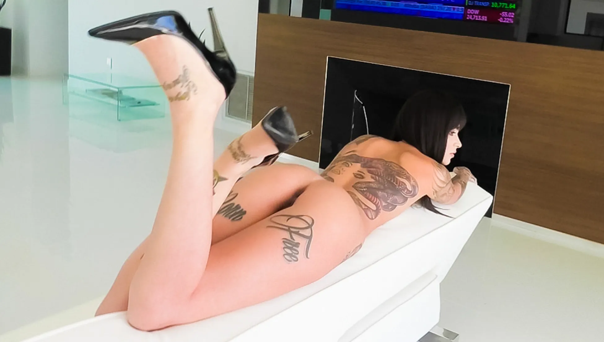 Anal Threesome: Tattooed Leigh Squirts